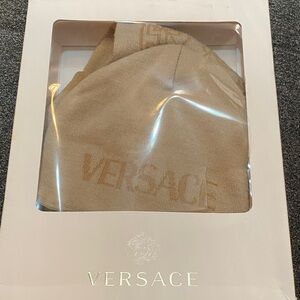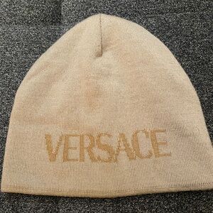 Luxurious Versace beanie and scarf set knitted Features elegant cream and tan tones. Perfect for a stylish winter look.very good condition
