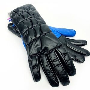 Stay cozy and chic this winter with these stylish Women’s Leather and Puffer Gloves—a perfect blend of practicality and elegance! These gloves feature a sleek black puffer design to keep your hands insulated and warm, while the soft, genuine leather palms and fingers provide durability and a luxurious touch. The standout detail? A gorgeous electric blue leather accent that adds a pop of sophistication and makes these gloves truly unique.