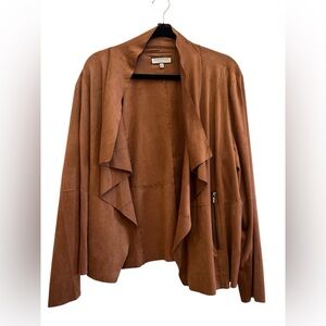 Bagatelle Collection Faux Suede Draped Waterfall Jacket 2X Brown Open Front Boho