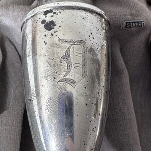 Condition is consistent with age, showing surface tarnish and patina. No dents, cracks, or repairs observed. Threads function properly. Monograms remain crisp.