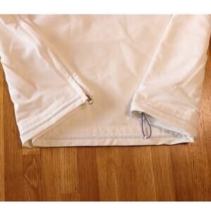 Brand new never worn white heavy duty windbreaker pullover, Vikings logo on the front, purple stitching around the collar, and vikings text on the back. one size zips up and the other side cinches in for an adjustable fit. This is a really nice material, super heavy duty. XL true to size