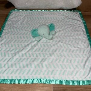 Cloud Island Plush Lovey Security Baby Blanket. Mint green/white elephant. Large- 29” Great preowned condition.