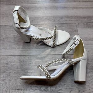 Pelino Bridal Sandals Sz 8.5 White Wedding Pearl Bead Ankle Strap MadeIn Greece
