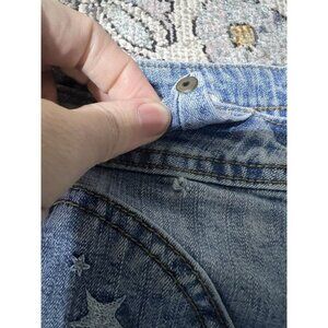 Tag on the inside is fraying a little on grommet also popped through the jeans on the waistband-see photos.