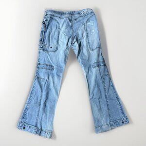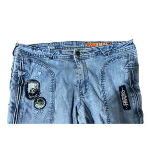 Vintage Y2K Akademiks AKDMKS Flare Patch SZ 15 33” waist Jeans Streetwear 90s
