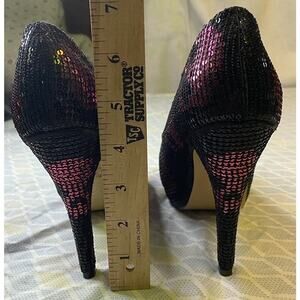 IRON FIST Pink/Black Sequin Satin Skull Platform 4.5” Stiletto Pumps Gothic Sz 7