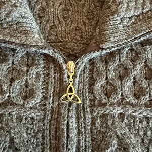Cozy Inis Crafts Merino Wool Aran Sweater Jacket Chunky Knit Cabin-Core Medium