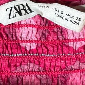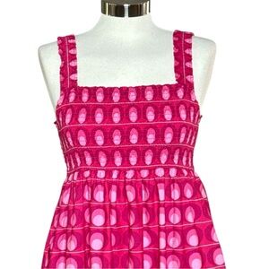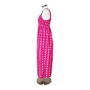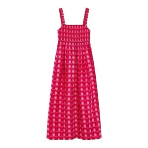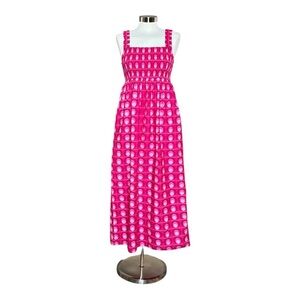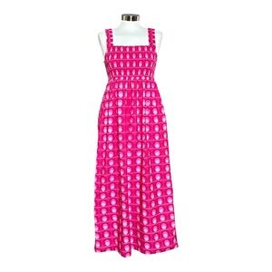 The perfect dress for summer!! Lightweight cotton maxi dress in a bold hot pink retro print from Zara. Smocked bodice and straps. Side pockets.