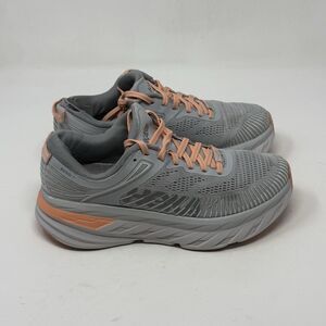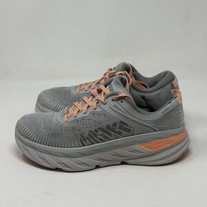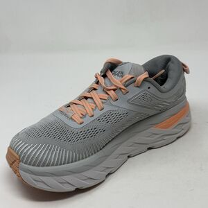 Hoka One One Bondi 7 Womens 7.5 Gray Orange Lightweight Running Shoes Sneakers