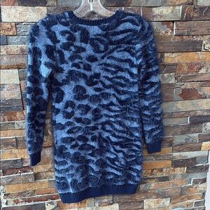Boboli Stylish Girls Fuzzy Sweater Dress Blue Animal Print