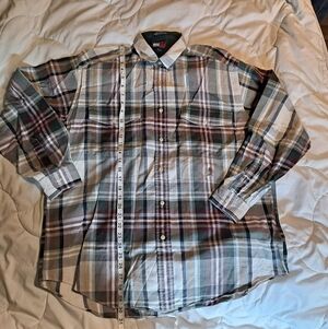 Tommy Hilfiger Plaid Button Front Men Shirt Medium Lion Crest🧡💙