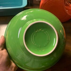 The glass is cased, meaning it has an inner layer of white glass covered by the green exterior.