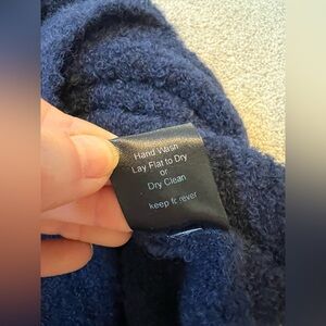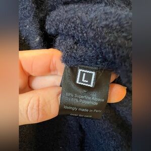 Chic long sleeve sweater dress in dark navy. Alpaca blend! Excellent like new condition from smoke free home. Size large. Stock photo is pictured with a garment underneath although it was not sold that way.