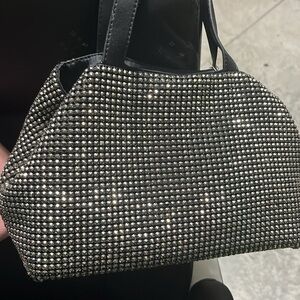 This elegant black studded women's bag is perfect for adding a touch of glamour to any outfit. Its sleek design and sparkling details make it a standout accessory for any occasion.