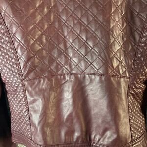 Ci Sono Cavalini Women Jacket Faux Leather Quilted Full Zip-Up Burgundy Size M