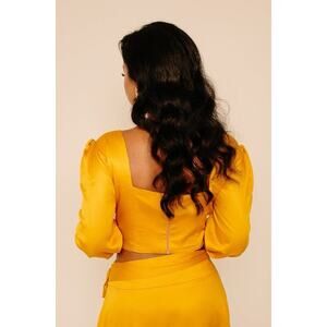 Add a touch of elegance to your wardrobe with this stunning Gehlan Saffron Lace Panelled Top. The top features a square neckline, long balloon sleeves, and a full zippered back. The saffron-colored top is perfect for any special occasion such as weddings or parties, and the yellow color adds a pop of color to your outfit. The extra-slim fit is flattering and accentuates your curves, while the solid pattern and lace panels add a touch of sophistication. This blouse is a must-have for any fashion-forward woman's wardrobe.