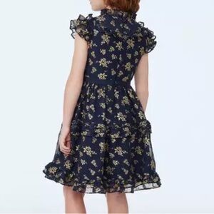 Every moment is golden in this sparkling floral dress with tiered ruffles and a grosgrain ribbon detail. It's perfect for the holidays and every special celebration.