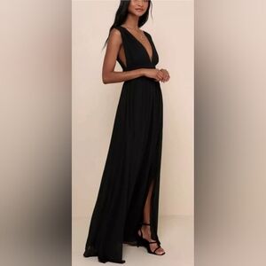 Lulu's Black Heavenly Hues V-neck Backless Maxi Dress - Size M