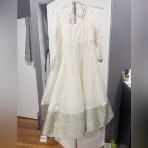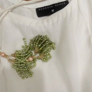 Elegant Cream and Green Maxi Dress Hussain Rehar