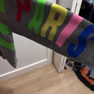 Such a fun piece! I love this sweater and it's super comfy, I just don't wear it enough. Few little pulls from the fabric, but in very good condition overall.