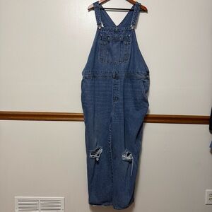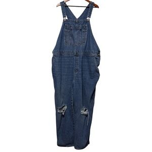 Old Navy Baggy Wide Leg Distressed Denim Bib Overalls Women’s Plus Size 24 Blue