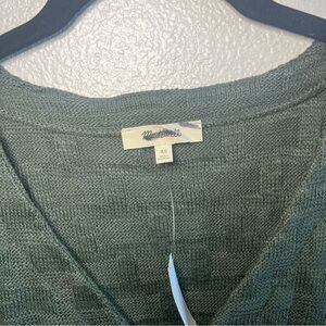 FLAW with Tags Madewell Basket-Weave Stitch Long-Sleeve Sweater Tee Green XS