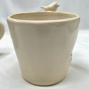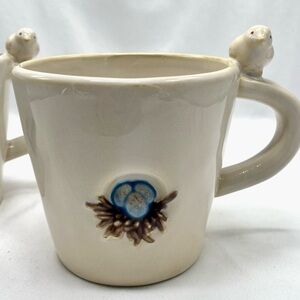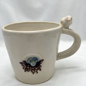 Pottery Barn 1 Ceramic Bird Nest Mug - Cream and Blue