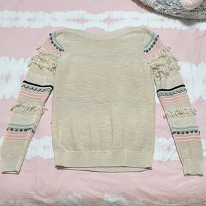 Women's Loft Cotton Multicolor Fringed Sweater size S
