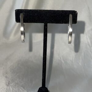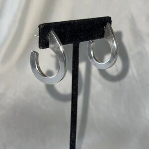 Elevate your everyday style with these chic sterling silver earrings! Featuring a unique teardrop or curved hoop design, these earrings offer a modern and minimalist aesthetic. They are medium weight and comfortable for all-day wear, perfect for adding a touch of sophistication to any outfit, from casual to dressy. The polished silver finish catches the light beautifully. A versatile addition to any jewelry collection.