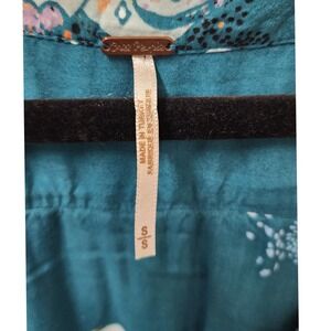 Free People Tuscan Dreams Teal Floral V Neck Tunic Long Sleeve Dress, Size S