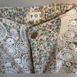 POL Floral and Lace Denim Maxi Skirt in Cream and Green NWOT Small