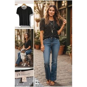 🌿Philosophy Women's Small Black & White Polka Dot Flared Shoulder Top