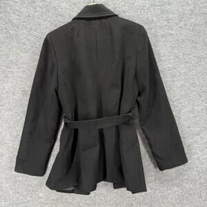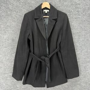 Cato Coat Women M Medium Black Collared Belted Long Sleeve Lined Rayon Casual