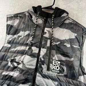 Ecko Unltd Vest Mens 2XL Gray Camo Hooded Puffer Quilted Zip Sleeveless Jacket