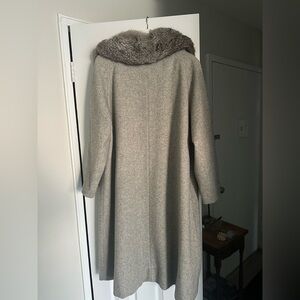 Stylish herringbone coat featuring a luxurious fur trim. Crafted for elegance and warmth.