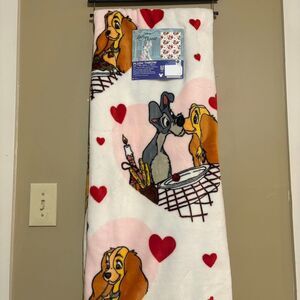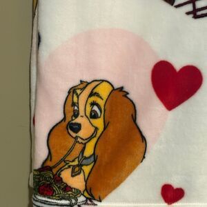 Disney Lady and The Tramp Pink White Valentine’s Day Pasta Heart Blanket NWT