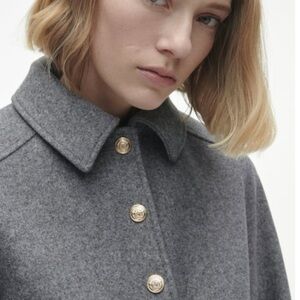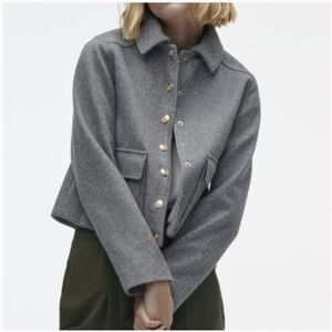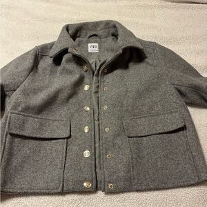 Zara Grey Soft Touch Cropped Military Jacket Gold Buttons