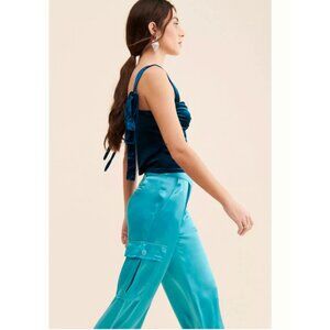 Anthropologie Corey Lynn Calter Satin Cargo Wide Leg Pants Aqua 3X
