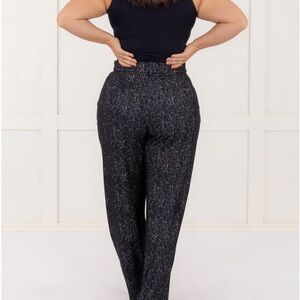 DESIGN DETAILS: BARREL LEG PANT STYLE: HIP-FLATTERING AND LEG-LENGTHENING WITH A MORE RELAXED FEEL THROUGHOUT THE LEG PREMIUM PONTE FABRIC: WITH 4-WAY STRETCH, THESE PANTS MOVE WITH YOU FOR MAXIMUM COMFORT PULL-ON DESIGN: NO ZIPPERS, BUTTONS, OR HIP POCKETS FOR A CLEAN, BULK-FREE LOOK HERRINGBONE JACQUARD: WOVEN DIRECTLY INTO THE FABRIC FOR A FRESH TWIST ON A CLASSIC PANT