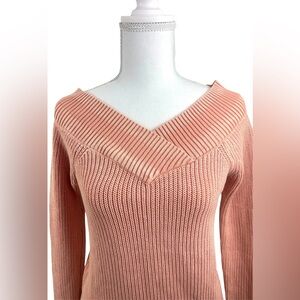 Rag & Bone Peachy Pink Dawn Off Shoulder Knit Cotton Sweater XXS Preppy Beach