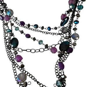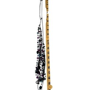 This stunning multi-layered necklace features a blend of purple and black beads, perfect for adding a touch of elegance to any outfit. Its intricate design makes it a standout piece for any jewelry collection.