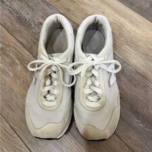 Classic New Balance sneakers in gray and white. Perfect blend of comfort and style.
