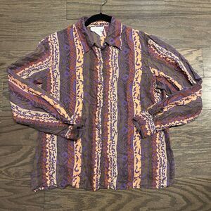 Vintage K Arnold Size L Silk Shirt Button-Up All Over Print Top Women's