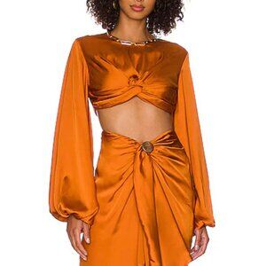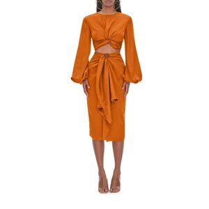 NWT Andrea Iyamah Behati Cropped Top & Wrap Midi Skirt Set Rust Size S