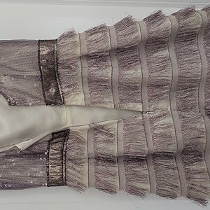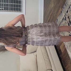 FROCK BY TRACY REESE METALLIC SILVER FRINGE RUFFLED MINI DRESS SIZE 4