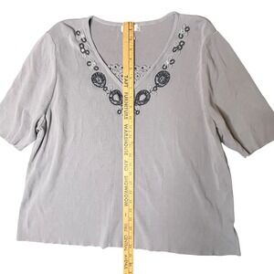 Keywords: dressbarn sweater, plus size top, women's sweater, gray sweater, embellished sweater, beaded sweater, short sleeve sweater, size 22/24, casual sweater, knit sweater, bling top, dressy casual, rayon blend sweater, nylon blend sweater