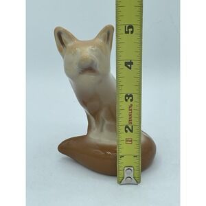 This product is a 2005 Fenton Art Glass 5" Chocolate Slag Fox Figurine, made in honor of the brand's 100 years anniversary. The figurine is crafted from brown glass, with a length of 3", height of 5", and width of 2". It features a fox design, created using art glass production style. The item weighs 1 lb and is impressed with the Fenton brand backstamp, making it a unique and collectible piece for animal-themed decor enthusiasts.