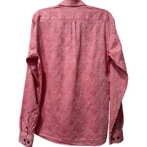 Jared Lang Premium Men's Pink Cotton Floral Flip Cuff Slim Fit Button-Up Large - $169