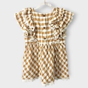 Matilda Jane Enchanted Garden Firefly Flutter Sleeve Top Sz 10 Tan Plaid Cottage