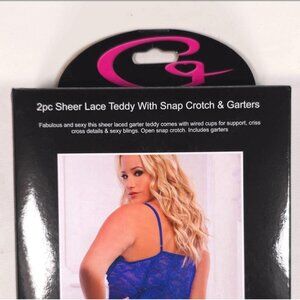 G World Intimates OH2423PQ Blue Gem Lace Teddy With Garters Snap Crotch Plus Size Lingerie